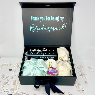 Their Dream Chaser proposal box is one of their best sellers and for good reason! Not only is it perfect for an amazing proposal/thank you, but it’s filled with goodies that she’ll use over and over again after the big day! Start with the box and build from there.